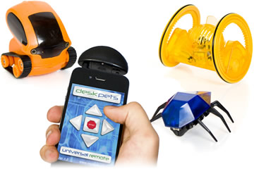 Desk Pets, robots controlled via the App - Now you can have some little friends to play with robotic with iPhone or iPod Touch. Desk Pets are called, but more than animals are robots that can operate with the panel on the screen you have a special thanks to App. The signal comes to him through an optical transmitter that allows the iPhone to connect the phone to communicate with Desk Pets.